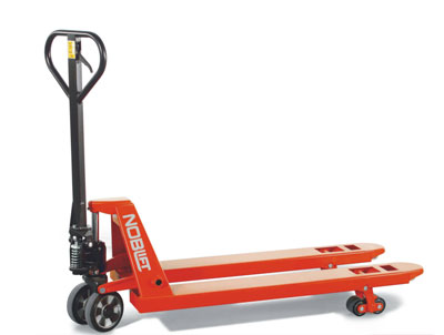 采用焊接式油缸,降低了整车成本,使本车更经济实用。油泵带手动缓降控制阀,增强了安全性能。三位可调手柄,操作方便可调。货叉前端为弧形,方便装卸货物。“C”结构的货叉可支撑重载,非常坚固。货叉下的推杆可调,以控制货叉高度。